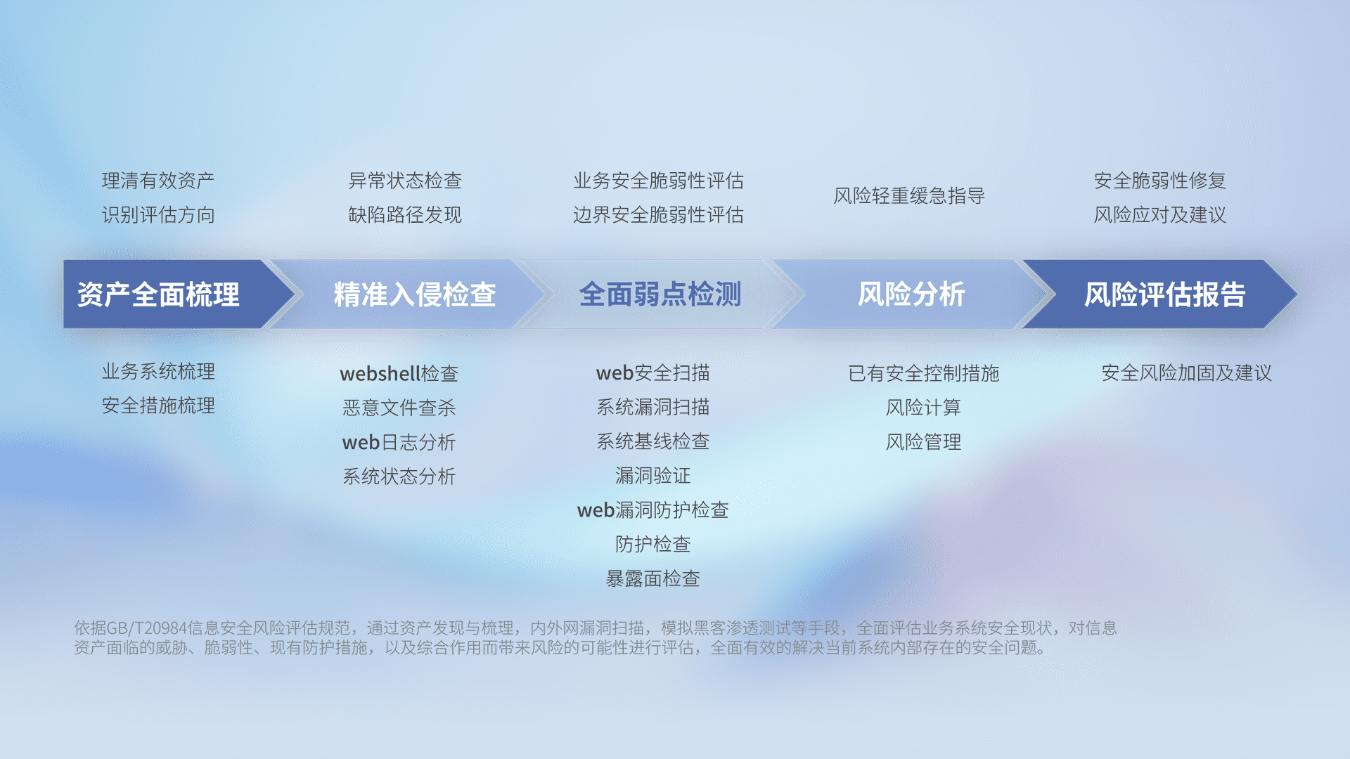 针对客户行业特性,,,,以专业的安全服务+多厂商联合解决方案提供专属的一站式安全管理服务,,,帮助客户全面感知网络空间威胁,,,基于识别、、检测、、、分析、、防护、、监测、、、响应的服务理论模型,,,从方案咨询、、、集成交付、、、、评估验证、、、优化加固、、、运维运营,,,致力于为客户提供完整的闭环管理式安全服务。。。。以实战经验为客户打造高抵御风险的安全体系,,,,帮助客户发现威胁、、、、对抗威胁、、、、处置威胁,,,不断积累安全对抗能力,,持续保障数字化安全。。。